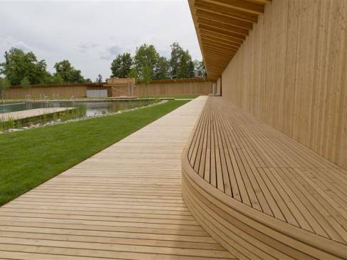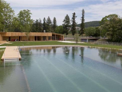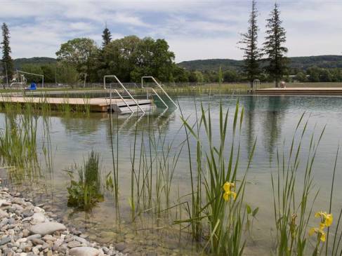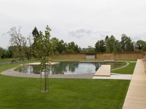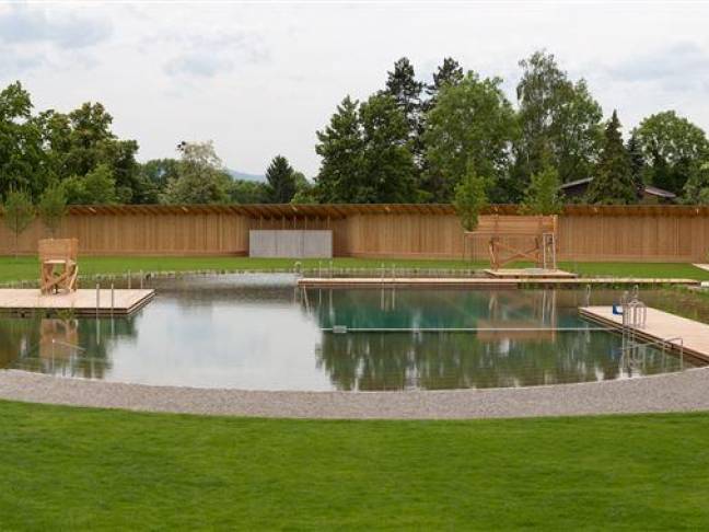 | Naturbad Riehen Naturbad in Riehen Am Fusse des Schlipfs lädt ein attraktives Freibad zu Sport und Erholung ein. Das Naturbad liegt am Rand des Landschaftsparks Wiese - idyllisch, mit viel Sonne und freiem Blick Richtung Riehen Dorf und Dinkelberg. Adresse Kontakt Naturbad Riehen Das von den Schweizer Stararchitekten Herzog & de Meuron entworfene Naturbad wurde 2014 eröffnet und ist seither eine der grossen Attraktionen Riehens. Die Badeanlage liegt am Rand des Landschaftsparks Wiese und bezieht das grüne Umland vorbildlich mit ein. Hier baden Sie in Natur pur: Das Bad wird umweltfreundlich betrieben und setzt auf fortschrittliche Technologien. Für dieses wegweisende Projekt erhielt Riehen beispielsweise vom Internationalen Olympischen Komitee und der Internationalen Vereinigung Sport- und Freizeiteinrichtungen IAKS den Gold-Award für beispielhafte Sport- und Freizeitanlagen. Vom 22. Oktober 2024 bis am 1. März 2025 wird das Naturbad zur Sauna. Alle Informationen zu Öffnungszeiten und zum Saunabetrieb finden Sie auf der Seite des Naturbads. Ausserhalb der Badesaison vom 1. Oktober bis 30. April kann das Café des Naturbads für Anlässe gemietet werden (unter Voraussetzung des Caterings durch den Betreiber). Das Café bietet rund 50 gemütliche Innen- und viele sonnige Aussensitzplätze und eine gut ausgerüstete Küche. | Gemeinderatsbeschluss betreffend Reglement Videoüberwachung des Naturbads Riehen Infos zum Naturbad Reglement Videoüberwachung Naturbad | Naturbad Riehen